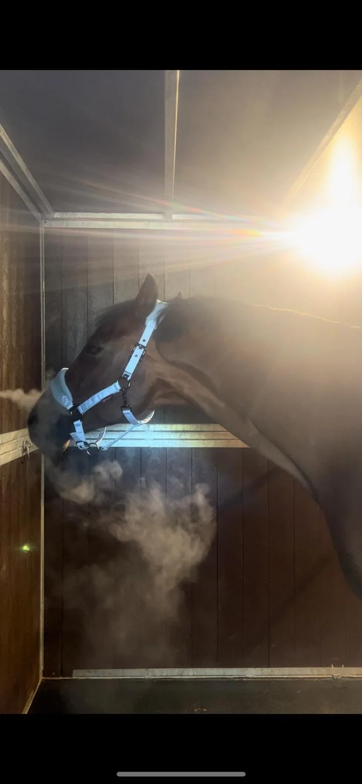 We have an enclosed ‘salt stable’ at our centre, but we also offer a mobile service. The salt therapy unit that can be brought directly to your yard in our 3.5T lorry. Provided there is suitable parking and access to electricity. The unit accommodates two horses simultaneously, making it a time-efficient option for multiple horses or yard visits. Please note that mileage restrictions apply.